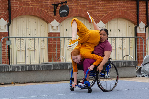One of the characters in Look Mum, No Hands! used their wheelchair to create new acrobatic shapes and movements that were original and unexpected.