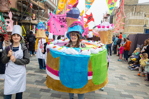 The Children's Parade is sponsored by award-winning community arts organisation Same Sky, which is the South East's largest community arts charity, and is also supported by Brighton Girls. This year's theme was "One World, learning and growing from each other". Local students, their teachers, and volunteers from Same Sky all came together to create a glorious array of outfits and puppets.