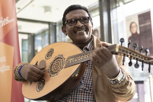 Alaa is from a famous Syrian musical family and has played the Oud and sang for 25 years. Although himself, not a professional musician, he is a well-respected player and is also training to become a translator to help support Syrian refugees settle in the UK.