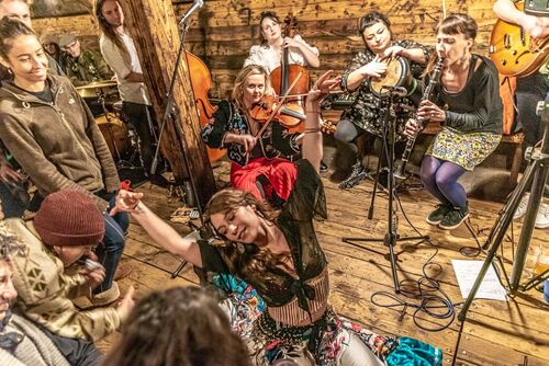 Balamuc are a unique collective of experienced musicians, with 7 members from countries in Europe, the Middle East and the Pacific. Their music originates from Eastern Europe but stretches way beyond the usual confines of their genre. Although renowned for their fierce violin and heartfelt melodies, Balamuc are best known as their life affirming, uplifting party spirit and boundless energy.